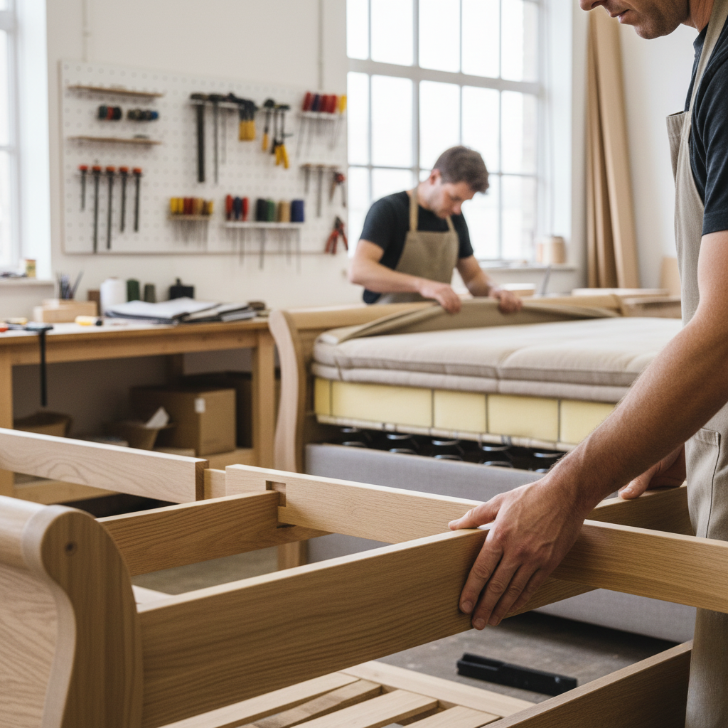 At Variety Bespoke Beds, every bed is built with a level of care that comes from years of hands-on experience. Our craftsmen shape each frame by hand, ensuring perfect alignment, sturdy support, and smooth finishing. From the curves of a sleigh cot bed to the modern lines of a winged ottoman bed, every design is crafted with accuracy and attention to detail.
